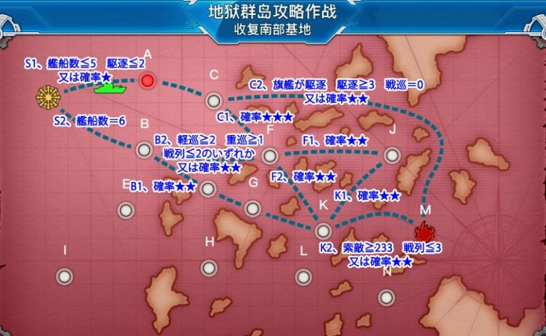 あ、そっかぁ二周年のこのマップは元イベとは別条件だったんすねぇ、センセンシャル!でもスタート分岐とC分岐の条件がなんかよくわかんなかったです