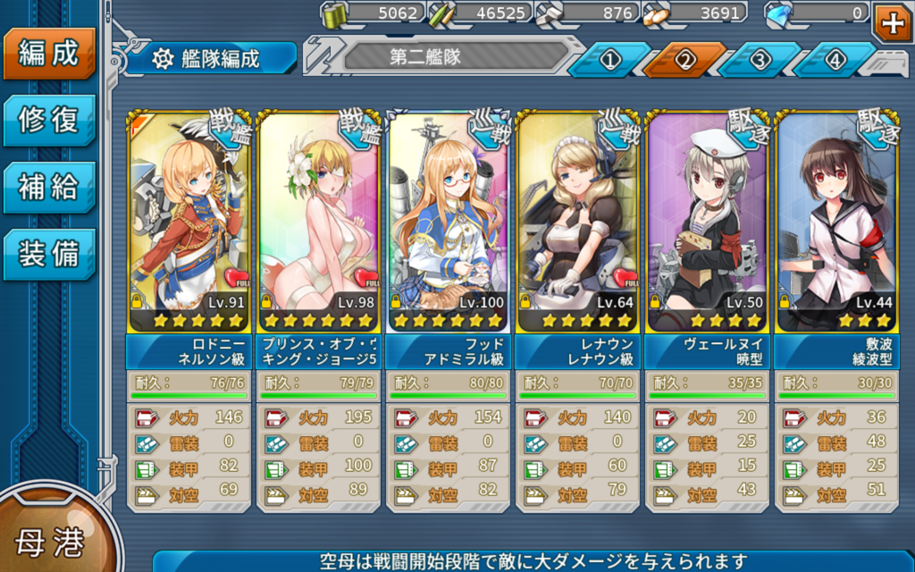 "母港南部水域(3-1)のDマスで深海特別部隊を一回全滅する"を2-4-Hマスと同艦隊編成で1回でクリアしたけど中大破艦は出なかったから然程ではなかったゾ。 艦隊編成