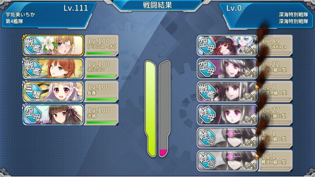 耐久は高いけど装甲は…普通だな!潜水艦の雷撃でやったぜ。やっぱり空母と潜水艦の開幕で敵艦蹴散らすのを…最高やな!