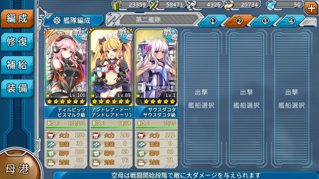 むりに6隻出すよりは精鋭5隻のほうが勝ちやすいと思うよ