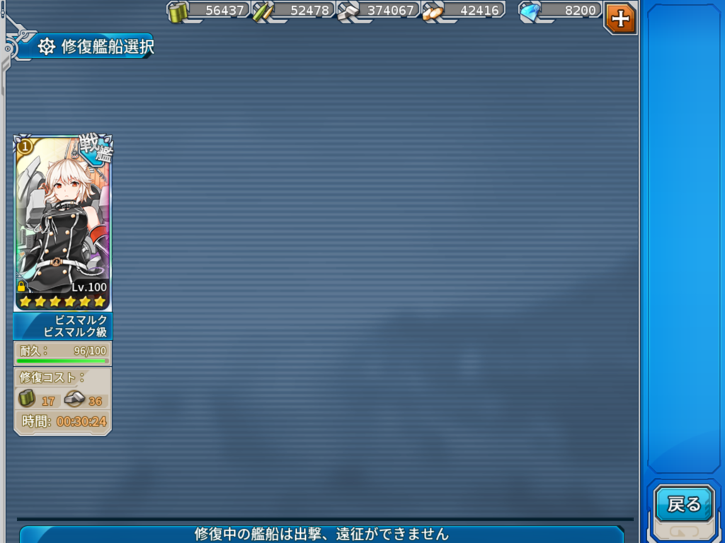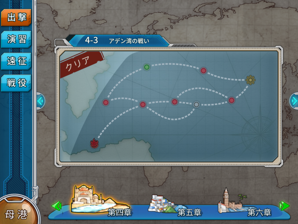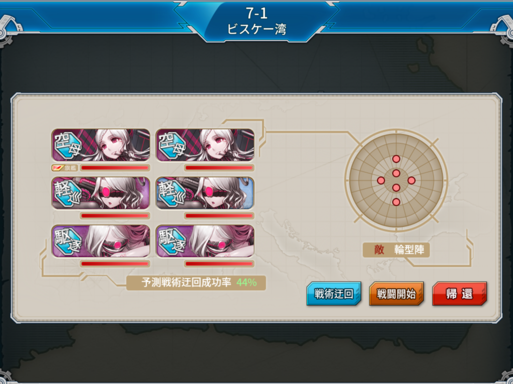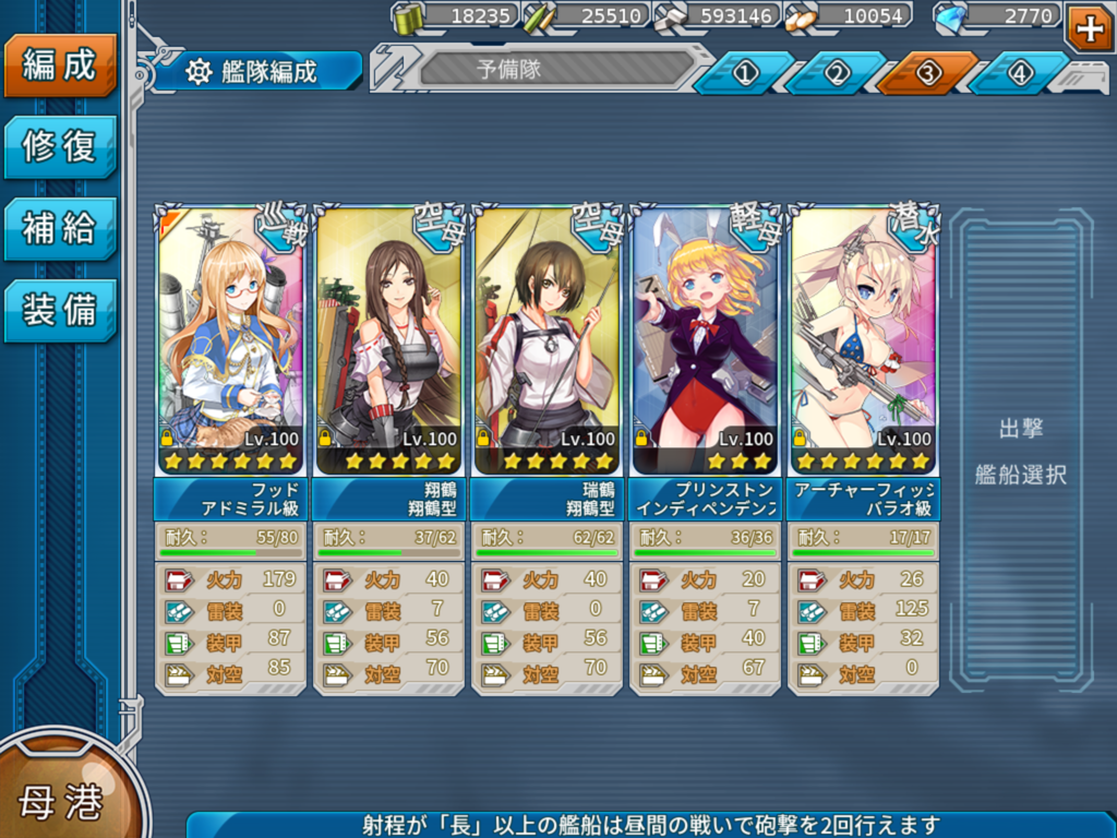 修理時間が、メインメンバーが30分ぐらいかかるなど、空いた時間にやると良いでしょう。 4-3-Dマスのボーキマスを、雪風とバイト艦5で狙います。