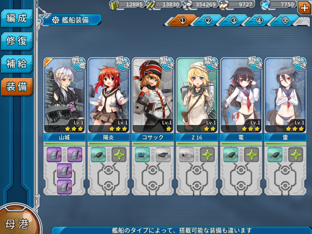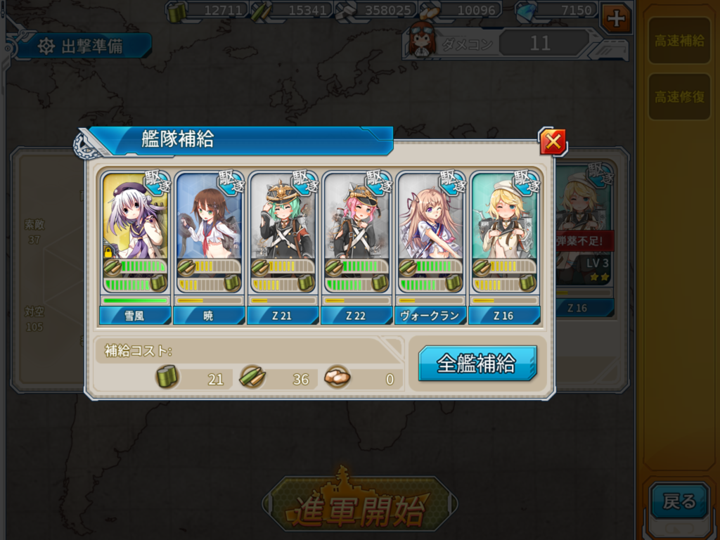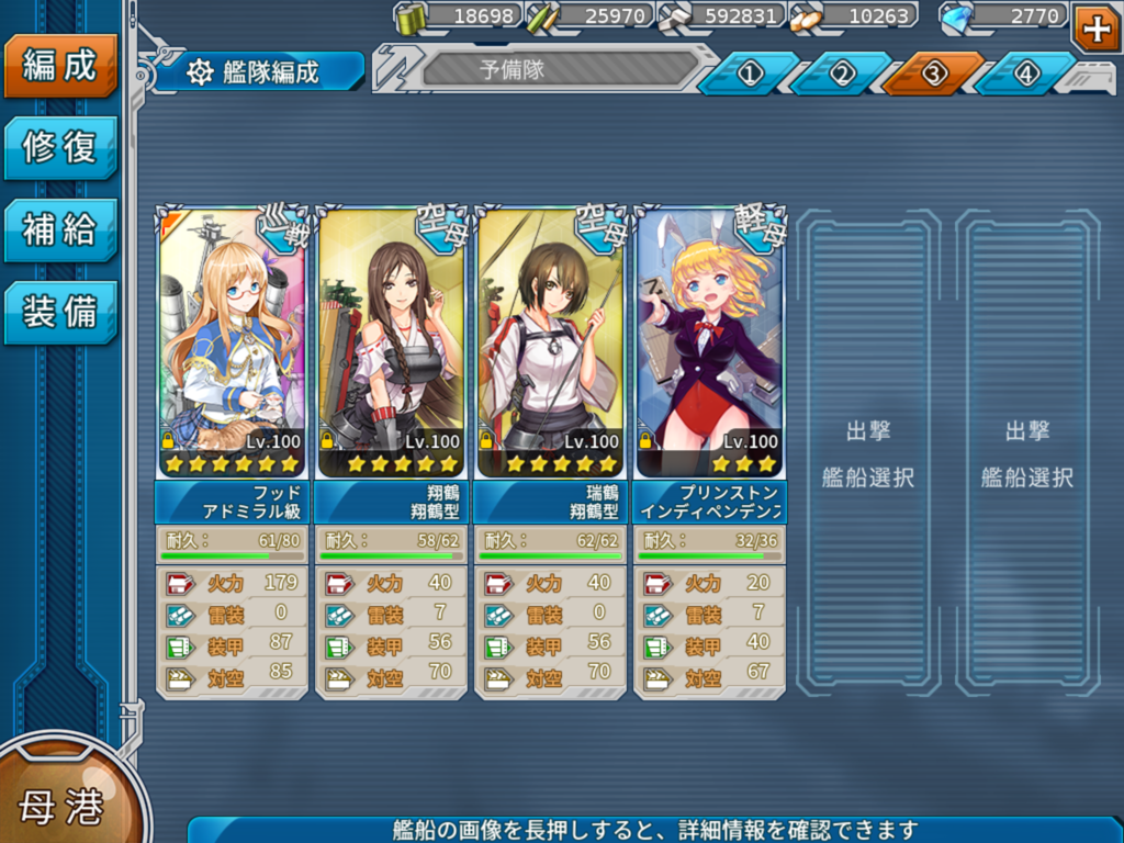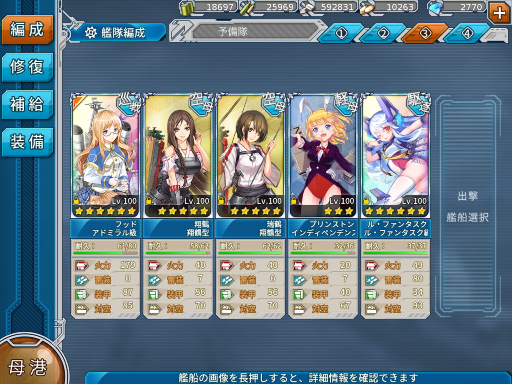 修理時間が、メインメンバーが30分ぐらいかかるなど、空いた時間にやると良いでしょう。 4-3-Dマスのボーキマスを、雪風とバイト艦5で狙います。