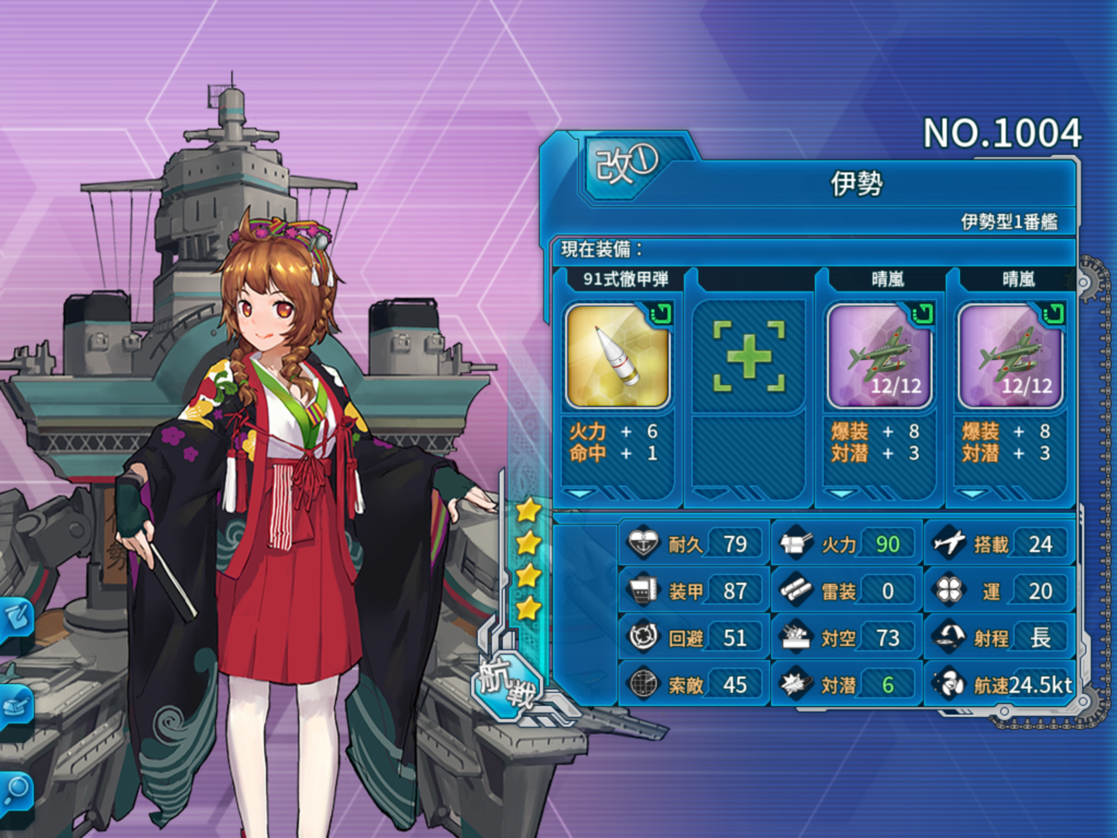 伊勢・日向が凄い強いっぽい。 1スロか2スロに積んだ徹甲弾が、3・4スロの水上機に徹甲効果を付与してるっぽい。