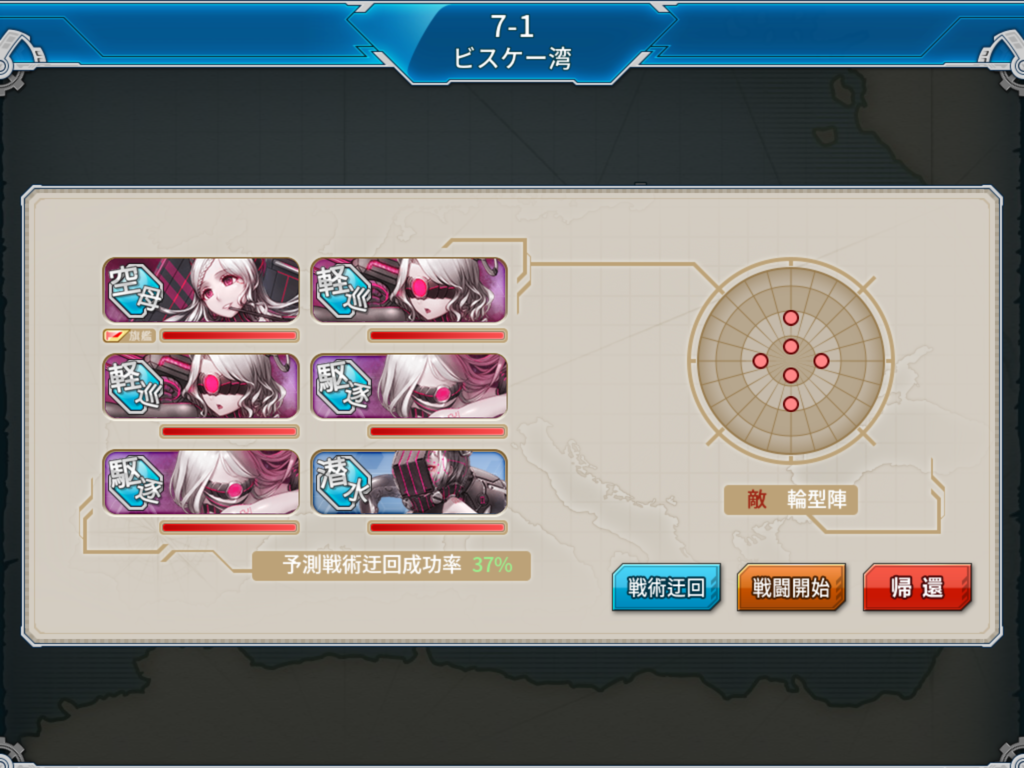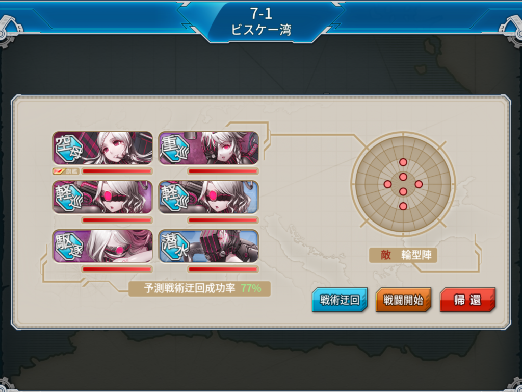 駆逐艦を盾にして、複従陣にするなど、色々試行錯誤してね。