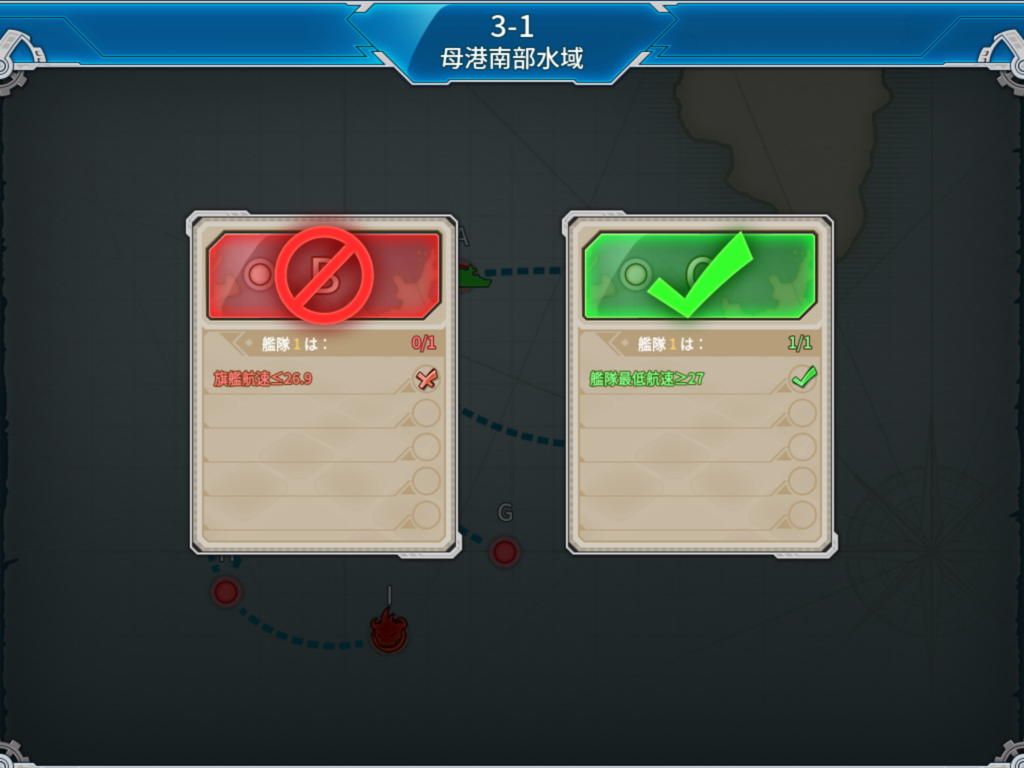 Aマス分岐は、旗艦航速27kt以上で行けるね。
