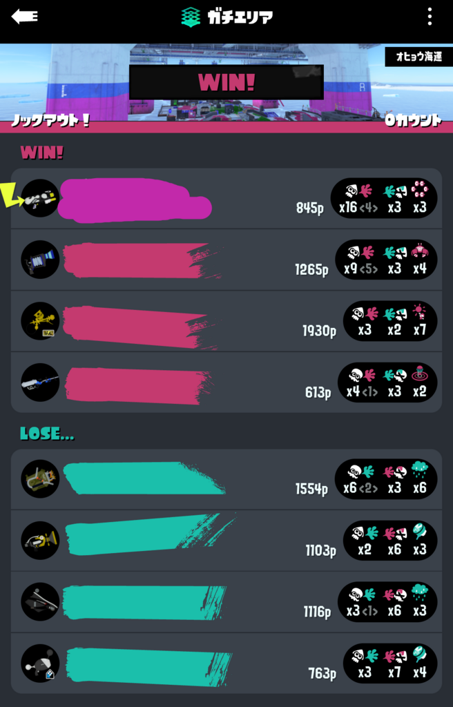 スペシュ、オープンでしか持たないけど、たまに持つとおもろい しかし普段プライムを持っているためスペシュとは思えない塗りポイント(画像みたいな感じ)になってしまうな 多分もう少し塗ったほうがいいんだろうが……(この試合は結果として勝ってるからまあいいんだけど)