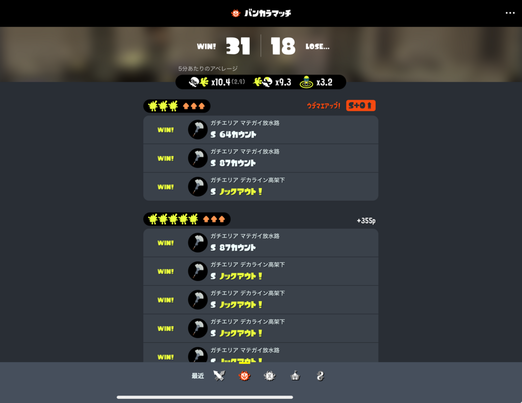 今シーズンオープンしかやってない状態で昇格戦行ったら3タテ食らってブキパワー計測もやったら前シーズンよりも500も低く出た……