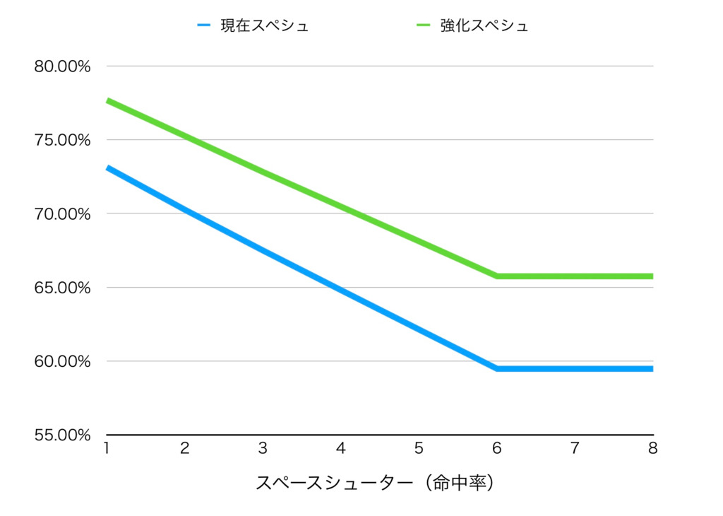 雑談板の方でも貼ったのですが、こちらにもほしいと依頼を受けましたので、命中率のグラフを貼っておきます。横軸は射撃回数です。
