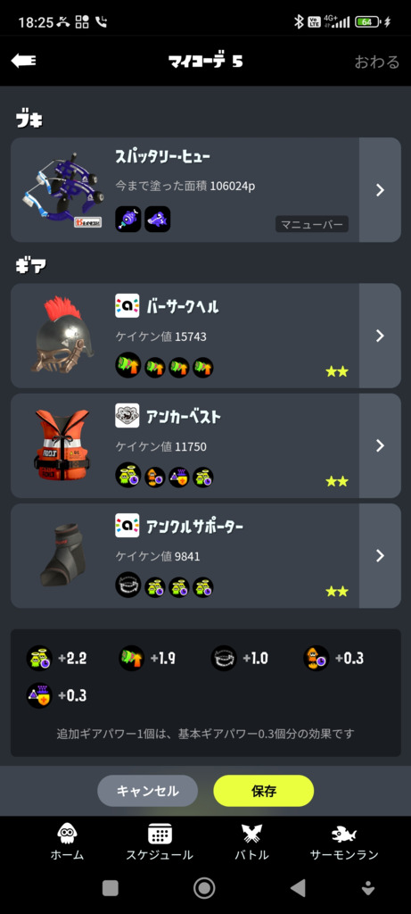 イカ速は0.2だけ積んでる。前は1.2積んでたけど、カムバゾンビステジャンにしてからは積む枠あるはずもないので最低限必要な分だけ積んでる感じ