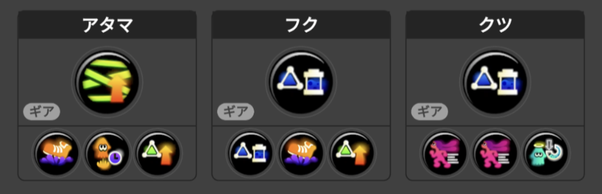 ←本職が怒りそうなギア 元無印使いだけどコラボも楽しいことに気づいて真面目にギア考えたらこうなった。クツは作り途中(その他は他武器ギア流用)だけど使用感良い( -`ω´-) これでもバレルのヒト速GP30以上の速さはある 追記:余裕でGP30バレルより早い。GP40位でも勝てそう