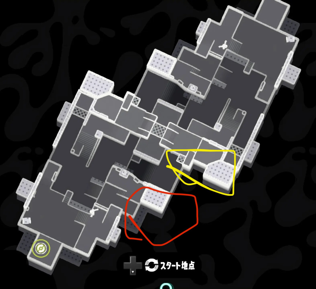 初代では赤や黄で囲った周辺もルートあったのになぜ削減されてるんだか 黄色に至っては余計なイカ返しのせいでマップで見える以上に登るルート減ってるし