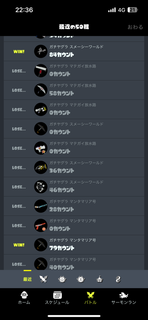 勝てない時は気分転換でコロコロブキを変える癖があるから、それもあるかも あと持ちブキがスパッタリーだからヤグラだと余計勝てないんよ