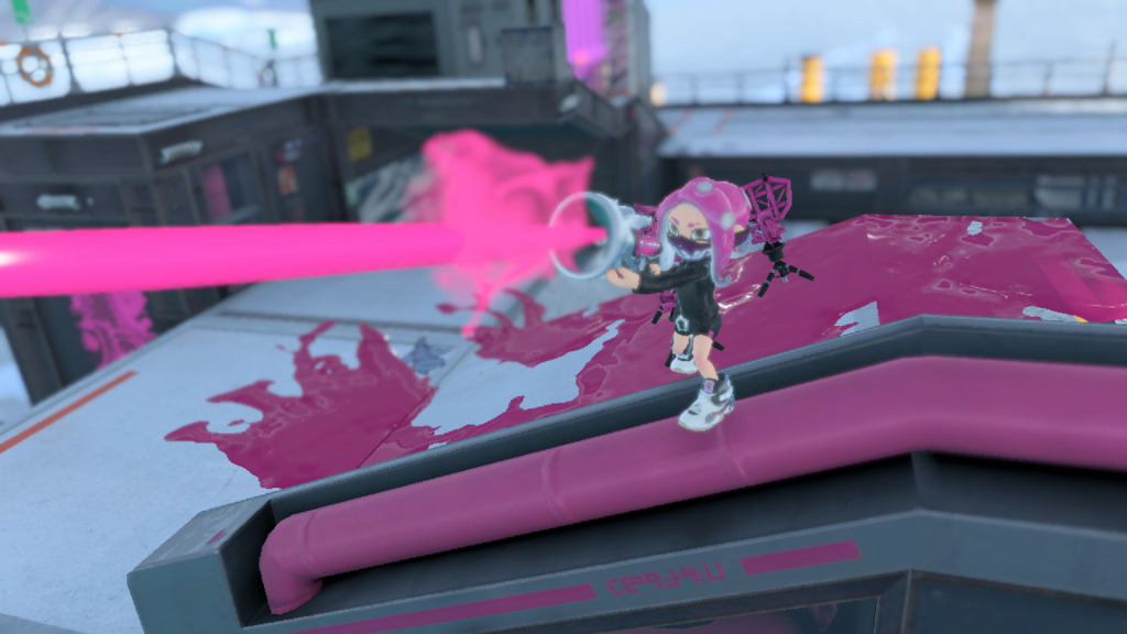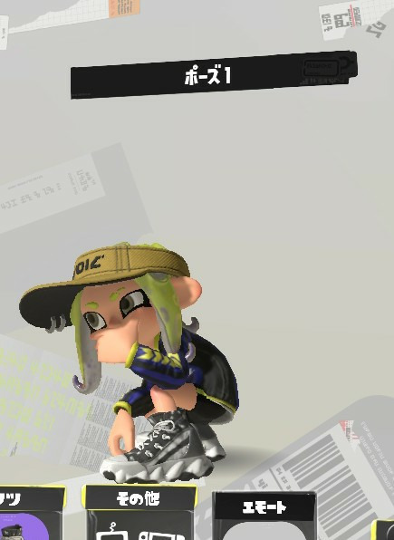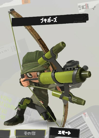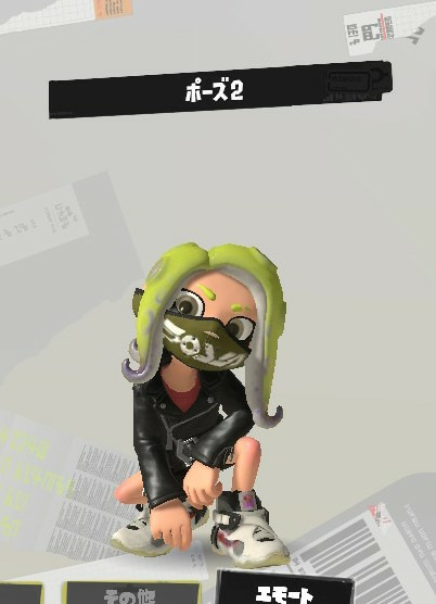 実際に試合で担いでる持ちブキ&勝負服たち、みんなお気に入り あとこちらもワンパターン過ぎ(ry 散歩中にエモート使えば良かったね………