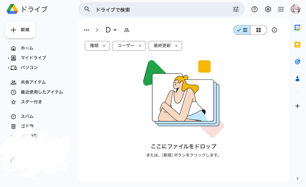 画像左上の「新規」をクリックして開いたメニューから「ファイルのアップロード」をクリックして投稿したい画像を選べば投稿できます