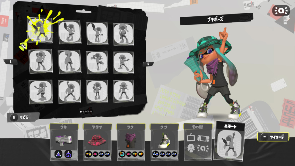 ブキのデザインに合わせてコーデをあーでもないこうでも無いと吟味するのが一番楽しい!