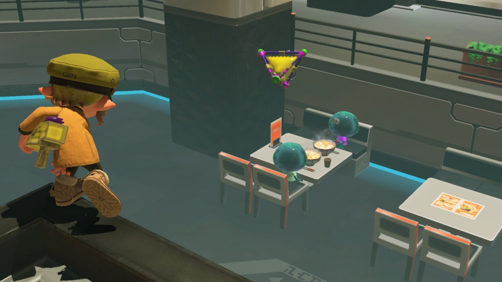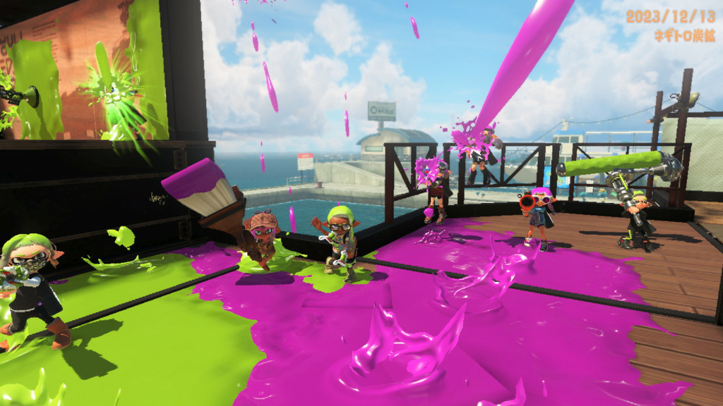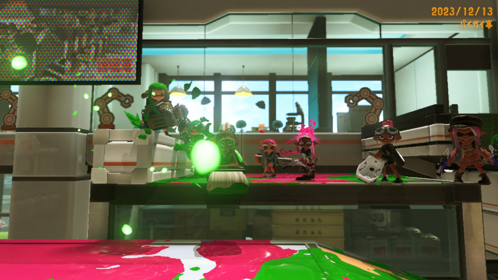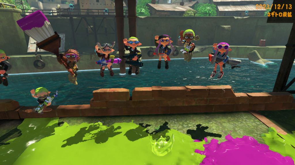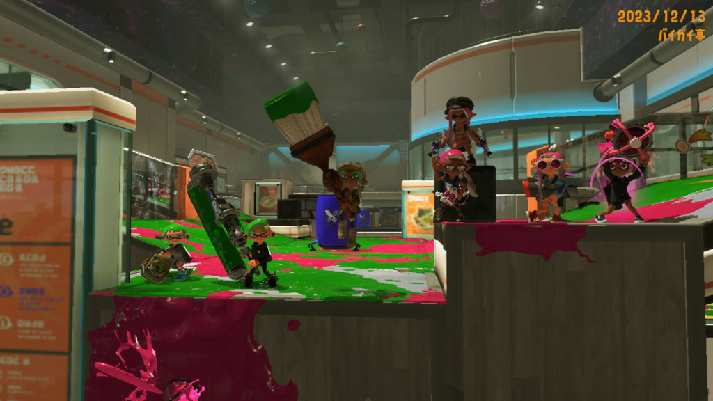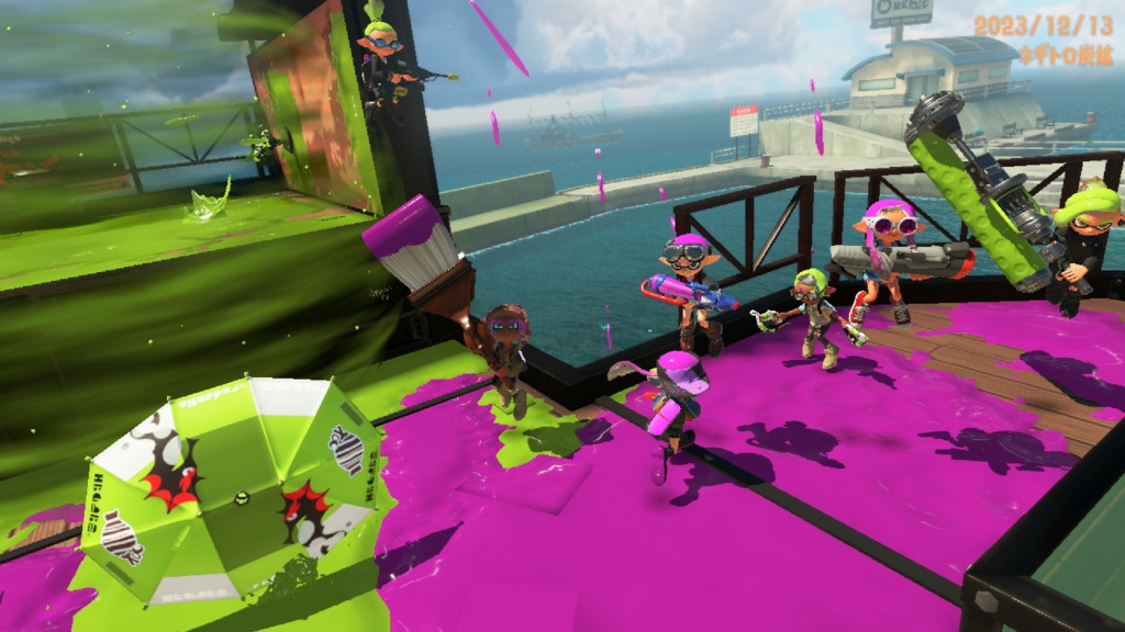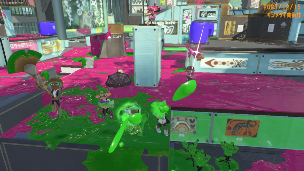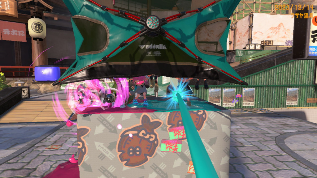 ラーメンを貫くヤグラの光 ナルトを切るロボイカちゃんと支えるクラゲちゃん(反対側はキャベツだったよ) 無限にぶつかり続けてるロボイカちゃん ラーメンガン見 スープに飛び込んだら即死扱いなのか発動場所に返されました
