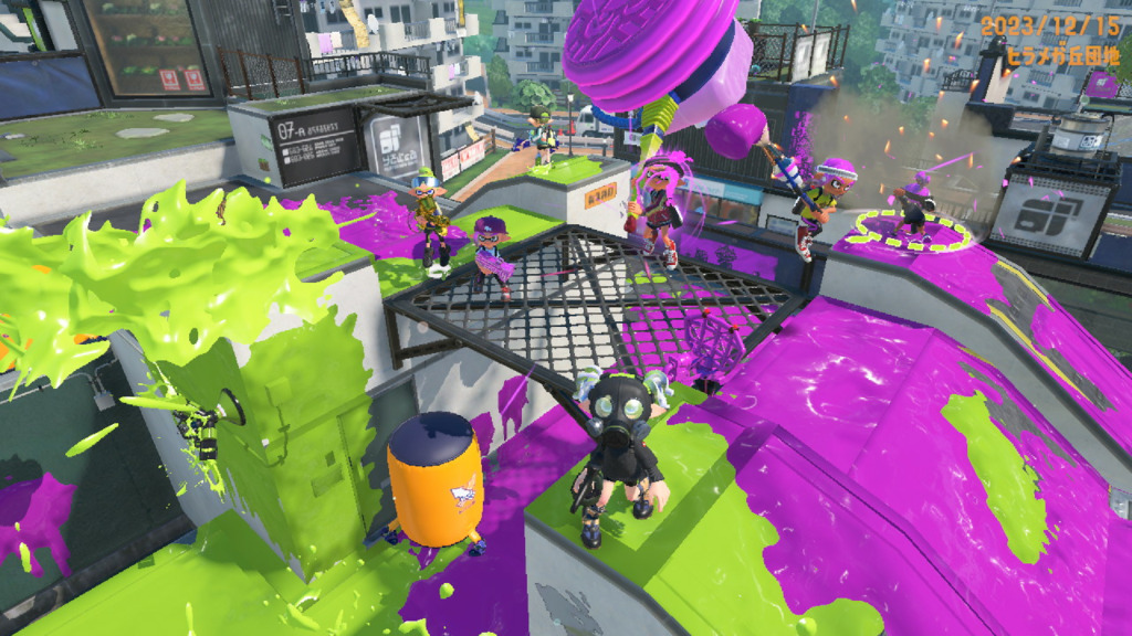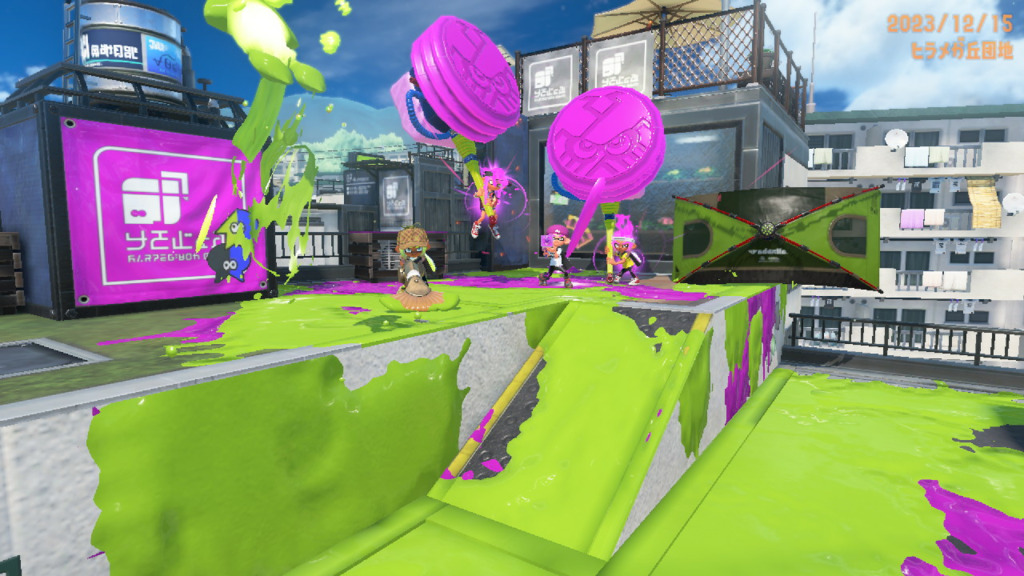 マンタローは少し離れて配置される。 ポーズ2で小さくすれば、他のアミーボより広い画角でプレイヤーだけを写すことができるぞ!