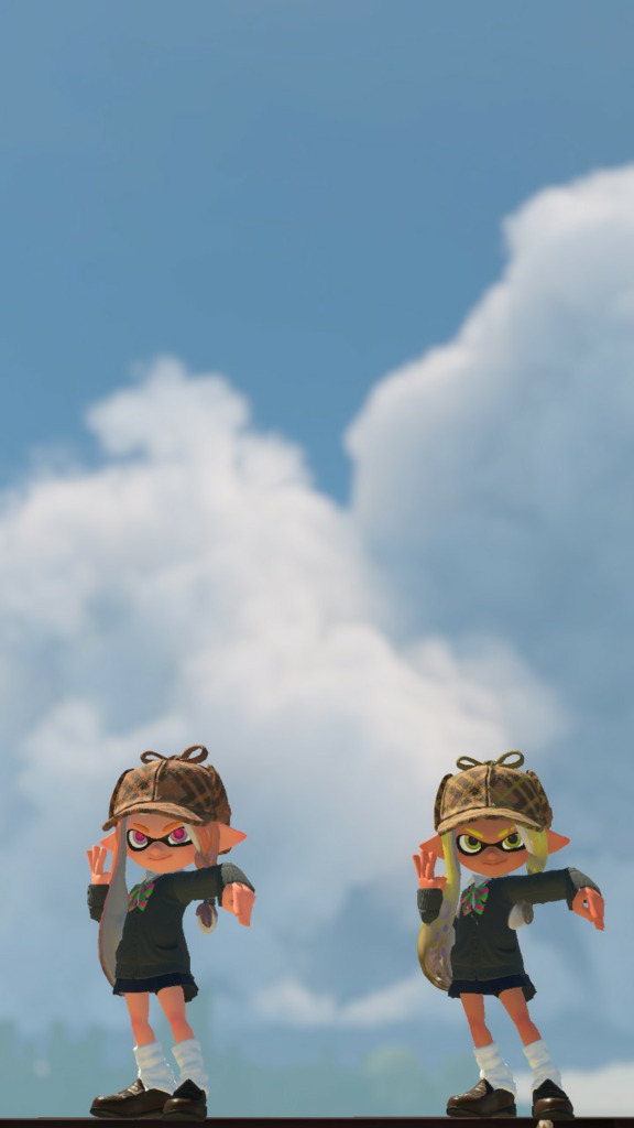 探偵帽イカちゃんカワイイネ…… ブレザーもそうだけど新ギアのサスペンダーもまたベストマッチだ ナワバトラーポーズもキマってるぜ