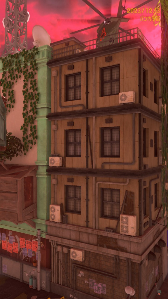 ヘリが待機している… けどクマサン商会は隣の建物なんだよな ヘリポートだけ借りてるのか、どちらの建物もクマサン商会のものなのか