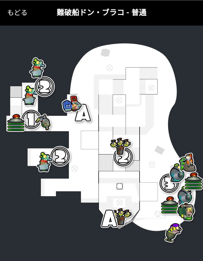 (A)中盤に船首ハシラ、カタパが湧く 船首ハシラはグダると一気にスコアが落ちるので、残っていればトルネでカタパもろとも倒してしまいたい 未満同様、ダイナモエスブラはタマヒロイを見るのを忘れずに