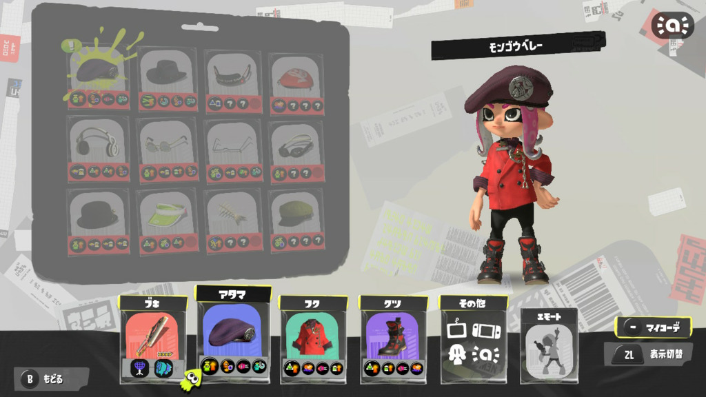 カムバ、サブ性20、イカ速9、インク回復6、安全靴6、ジャン短3、スぺ減3