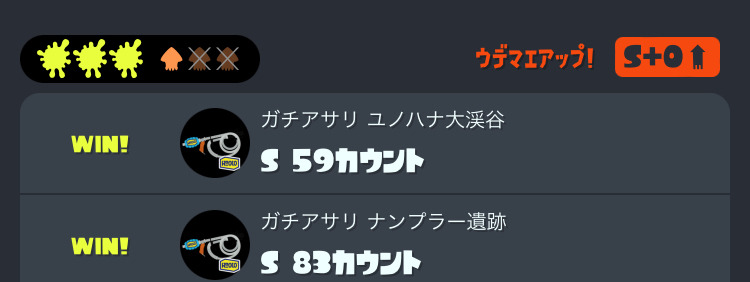なんとかソイカス1本でS+まで来れたぞー! フェス終わったらXマ計測やります!