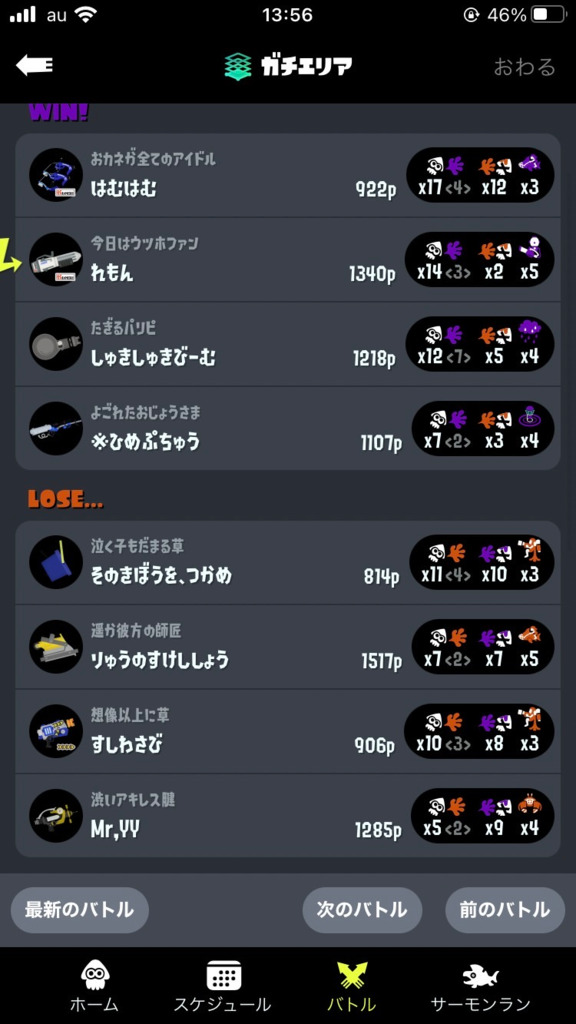 味方の代わりに死ぬことを徹底できた(気がする)試合。サメライドの弱いところを盛りだくさんでお届け
