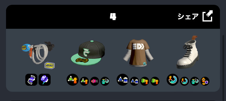 恐らくサブとスペシャルそれぞれの中で最も勝率が高いものを選定したのでこうなったと邪推 タンサンはヒッヒュー、クーゲルは依然として強ブキだし ハンコは全スペシャルの中で勝率一位というデータも出てる ソイとの噛み合いとか考えずにデータだけ参照した結果なのか・・