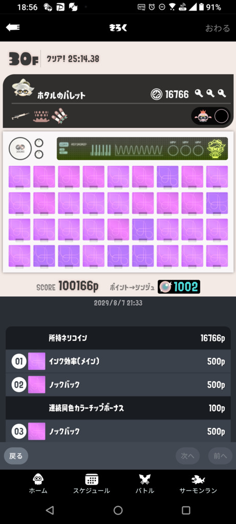 ボーナス「メインウェポン使わない」が出たので スプリンクラーとアメフラシでヤグラを進めることに スプリンクラーの飛沫でちまちま進めていくので最後のカンモンなんかは「ほらっ行けっあとちょっとだ〜っ」て声が出てしまったわ