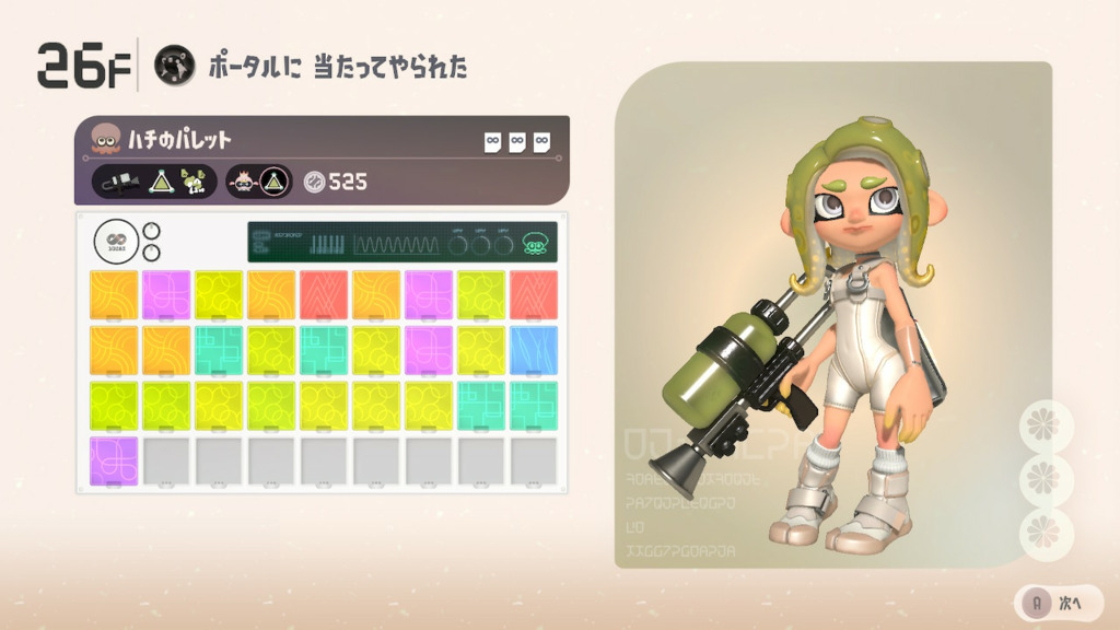 それから塔を一回踏破してみたけど特に何も変わりませんでした。というか塔の挑戦中も取ったチップのカラーに関わらずずっとこのインク色だった。2番目に多い属の模様が塗り跡に反映されるところだけは正常だった。