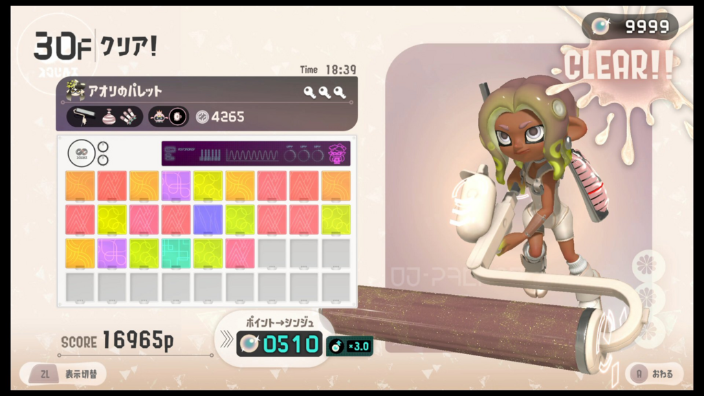結局のところ、シンプルに最大ライフと攻撃ダメージに1ずつ振るのが一番だと悟る スペシャルカンヅメ確率とドローンメガホンレーザーだけはなにがなんでも手に入れて、あとは塗りとか射程とかダメージとかダメージとか上げていく そして、パレットが完成したらそれ以上挑む意味がないから基本フロアスキップするつもりで臨む ・・・自販機でチップ大人買いしたせいでネリコインを稼ぎながら行くことになったけど、嫌なら飛ばせると思えば気が楽になった