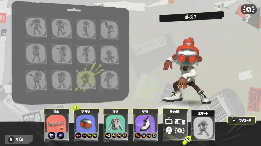 クツの特殊ギアたち ・ステジャンは無難 ・対物は便利 ・受け身がどのくらい強いのかわからないので試しに採用。 ・クツに限らず特殊ギアは全部積むのはしんどいかな……ルールによるのはそう