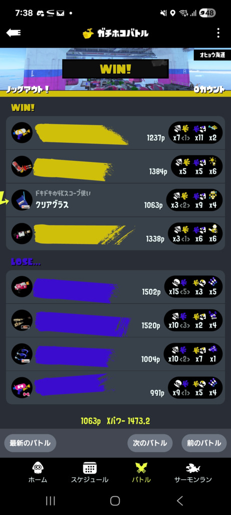 このカスみたいなリザルトでガチホコノックアウトしたの褒めて!!!