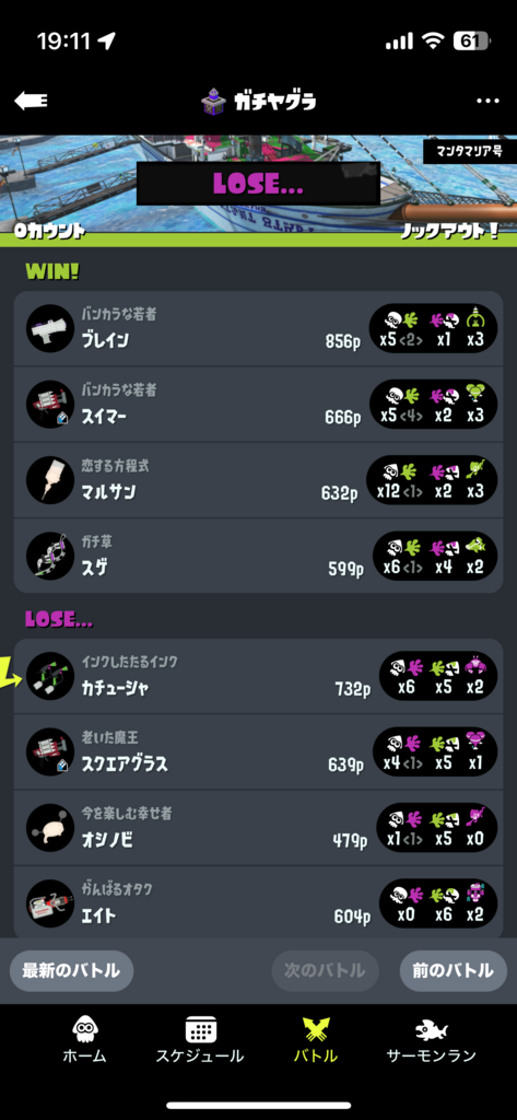 初動リッターに後衛の方々が抜かれて以降常に人数不利(耐え)、復帰後何故か後衛の方々がスペシャル回さずに突っ込んで即ノックアウトなのでそういった机上の立ち回りはできません😣