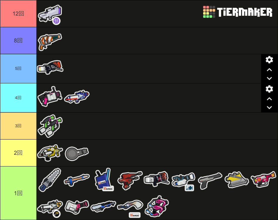 同じ人の同じブキを1回だけカウントするようにしたらSブラもっとぶっちぎりになりそう