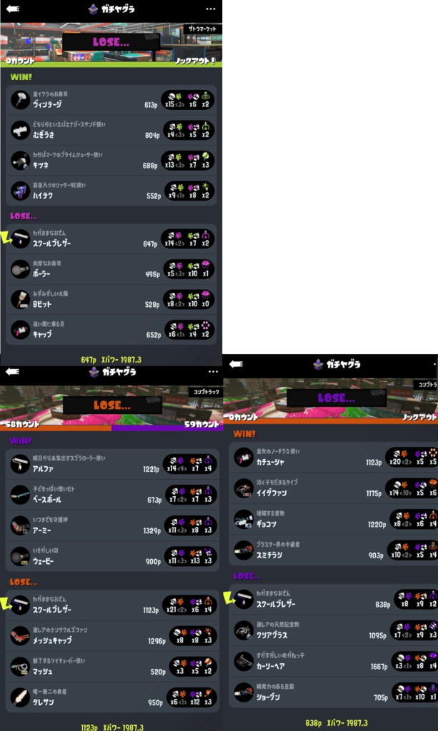 対面よわよわ武器でキルデス大赤字やらかしたのに3金表彰もらってゲソパンプ、なんというかとても申し訳ないと感じたりする。