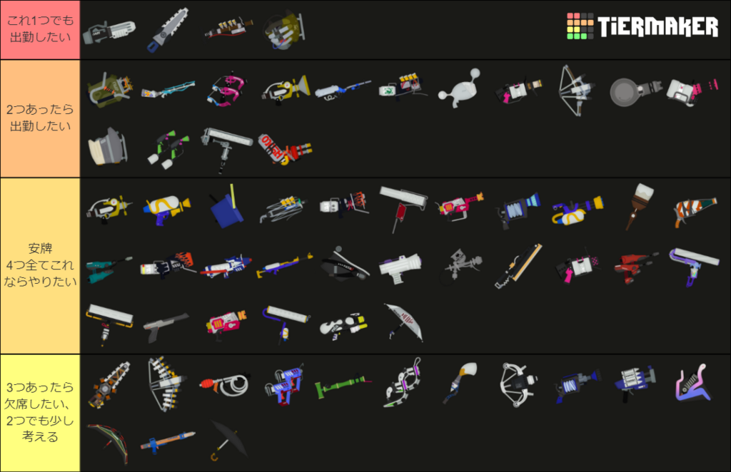 強さとか抜きにして独断と偏見による出勤したみTier表 今回は評価:粛清だけどワイは出勤