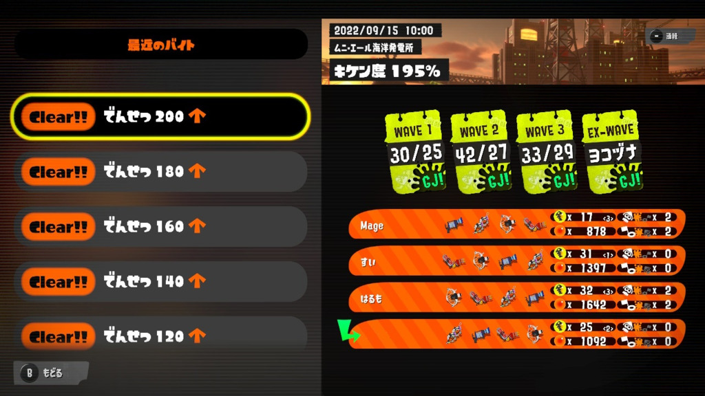 オオモノ倒した数も赤イクラも多い(赤とスペシャルは仕様変更のおかげかな?)