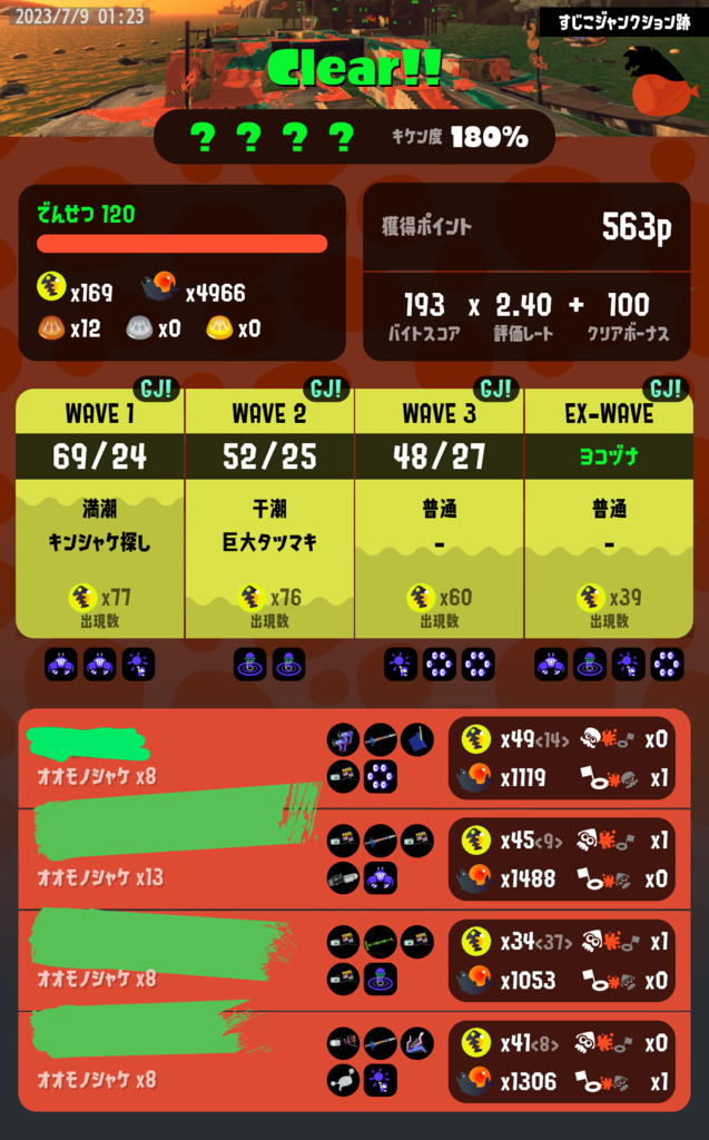 全ウェーブ満潮夜&第1、第3ウェーブ間欠泉&ダイナモ支給&第2ウェーブ霧&全金シャケポンデリング