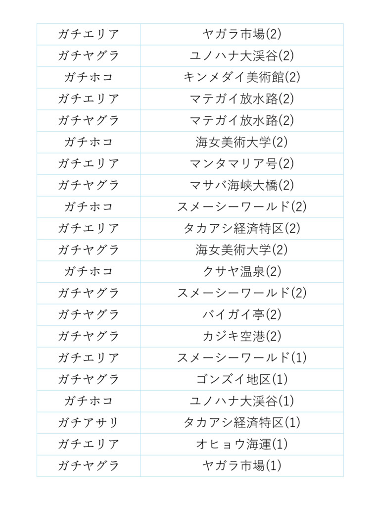リュウグウアサリの塩具合がひどい!!!!! 攻めルートが狭いのが悪いのかな…移動床はどのルールでもひどいからな… なんとなくハンコみたいに押し込めるスペシャルが強いように見えました(特にキューインキとかいう使えんものがガチで使えなかった、上手くやればいいのだろうけど…)ただどんどん押し込んで行っても一人抜けてアサリが入れられてたり…広い上にゴールが遠いからそういう感じになりやすいのかな〜と思います 最近オープンが行われてるからかパワーがちょいちょい見れて面白いです、また普通にバンカラオープンやりたいですね〜ここのdiscord活用すればボイチャしながらとかでもできるのかしら…需要があればやってみたいとは思います… 改めてありがとうございました!