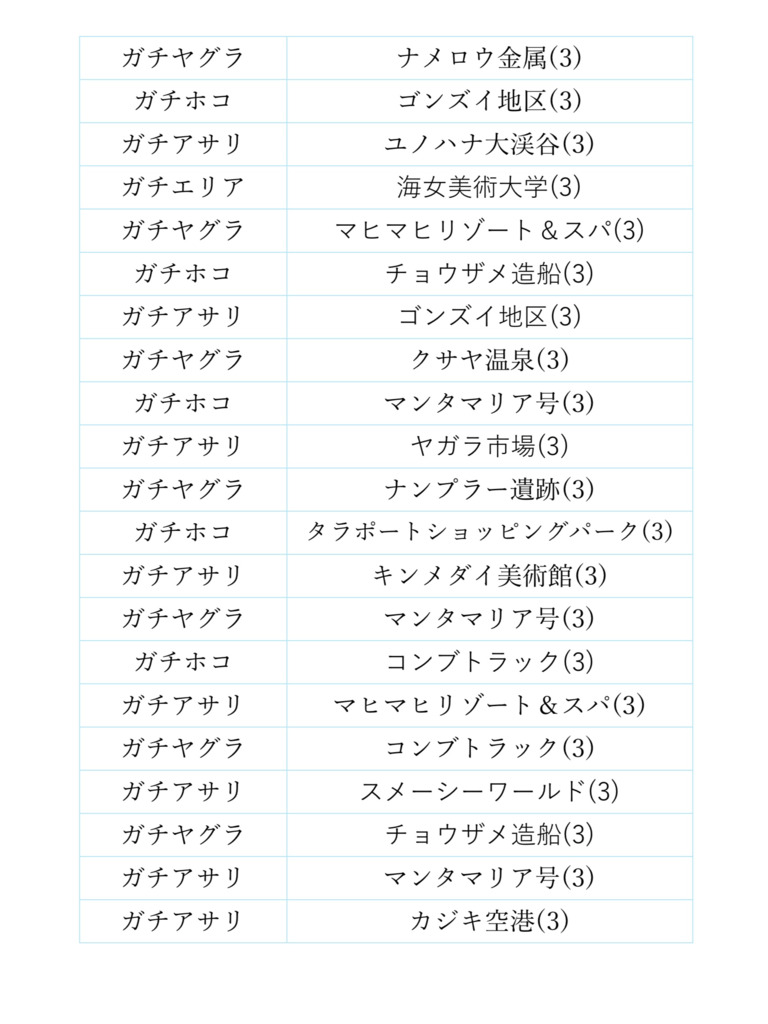 投票が多かった順番にやっていきたいと思います()内の数字が投票数です(圧倒的ユノハナエリア) 1時間枠でとりあえず上から10個やって、5以上の標数が集まっているものをとりあえず回収したいと思います