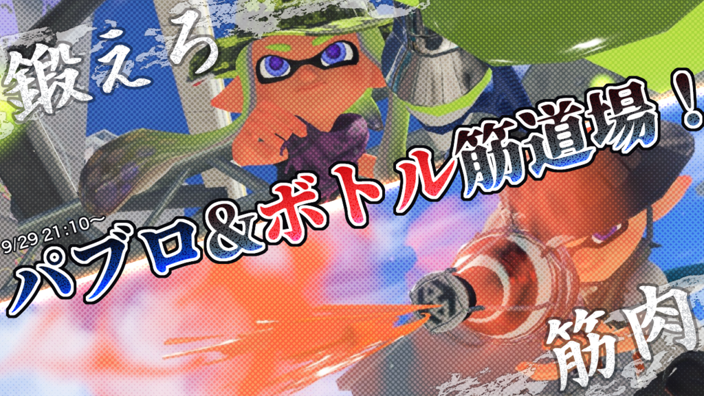 【鬼畜】パブロ&ボトル筋道場!(迫真) 日時:9/29(日) 21:10~22:00(終了時間は前後する可能性) ※開始10分前に部屋を立てます(直前のプラベに入ってたら立ってないかも、ごめんなさいです) チャンネル名:おねがいしマッスル パス:8261(パブロ・ヒュー)
