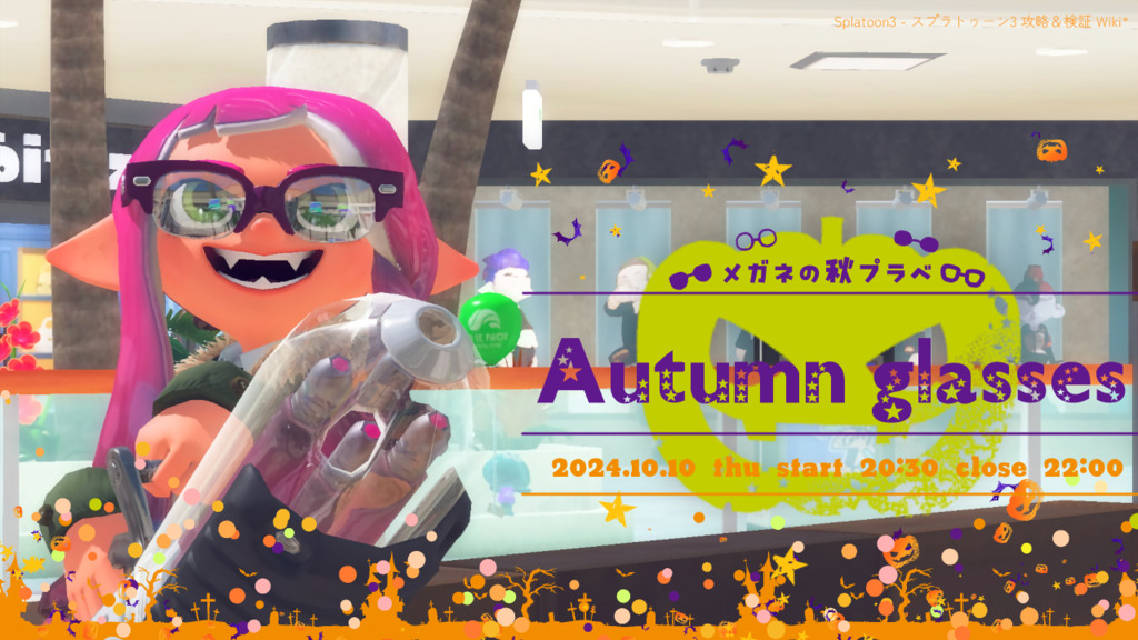 【告知】メガネの秋プラべ 日時:10/10(木) 20:30〜22:00 ※開始10分前に部屋を建てます チャンネル名:めがねはいいね パス:2208