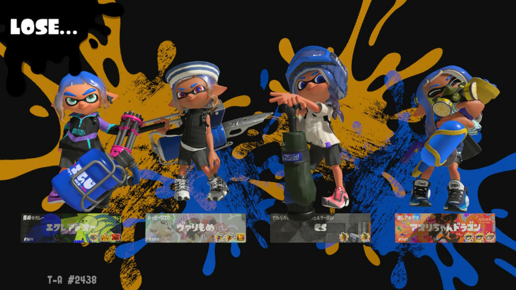 ・とりあえずナワバリの部屋から作り、3戦ほどして、反対意見がなければバンカラオープンに移行します。 主催者のウデマエはS+0です。