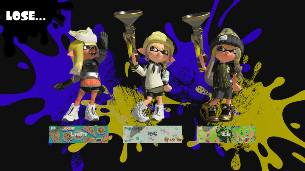 基本ナワバリよりガチマの方が燃える人間なんですが、フルパでわいわい喋りながらだとナワバリもこんな楽しいの?って震えました フレに付き合ってもらうときも基本トリカラだし、自分一人でえいえんまで上げるときって正直気持ちが作業になっちゃうことも多いので、マジですごいなと思いました(語彙) 隙自語になりますがフルパできるほど友人もいないのでマジで貴重な体験でもあり、キューインキ軍団で100倍マッチ一回勝ったのも色々面白すぎるわで密度が濃厚すぎてVSランダム2の方の記憶が正直大分飛んでます それもお三方が優しく楽しくしてくれたからこそだと思うので、本当にありがとうございました! 楽しかったです!
