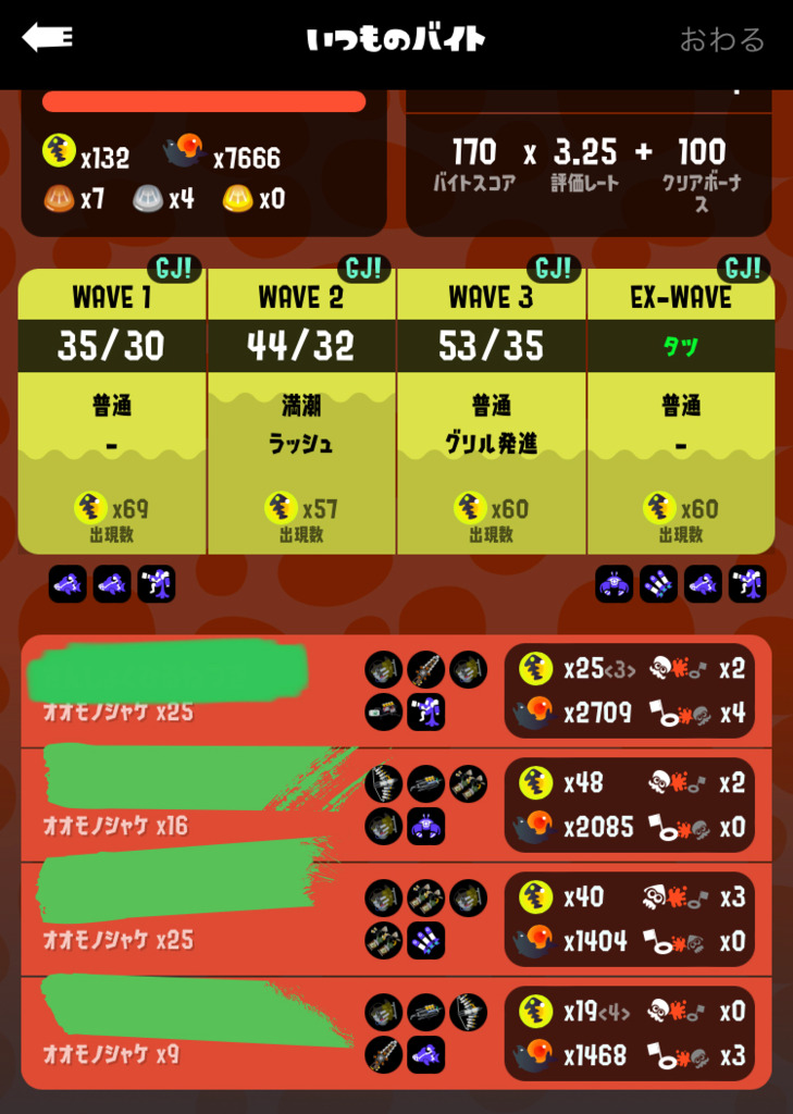 全員で海岸に突っ込んで全員の力を合わせて1体のオオモノを倒し3つの金イクラに回収してまた海岸に向かうのが通用しなくなり