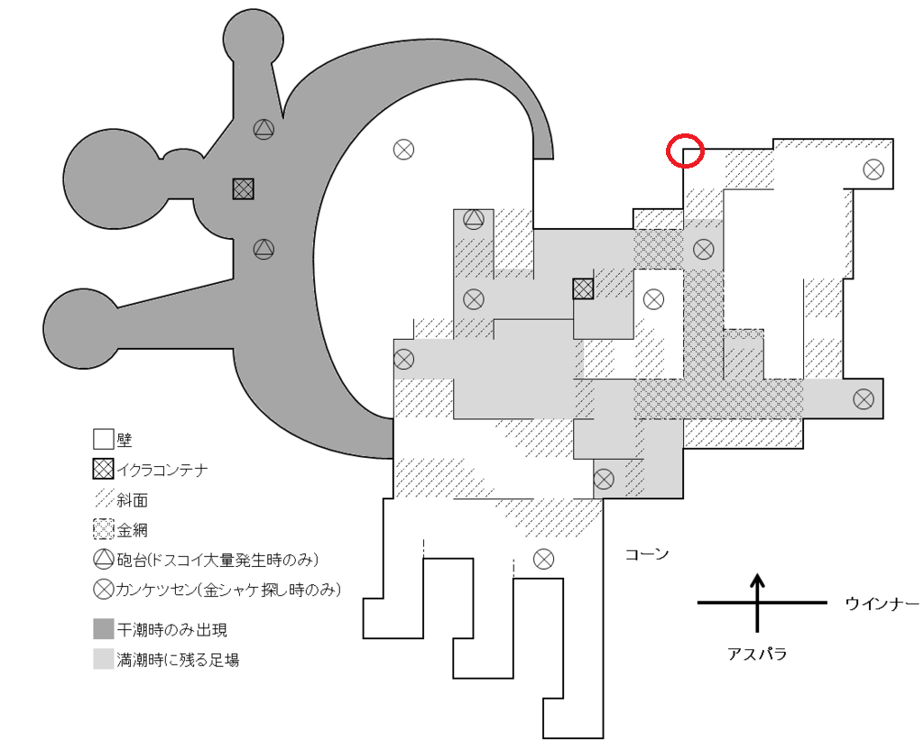 わかりにくいがとりあえずマップで言うと丸で示した地点