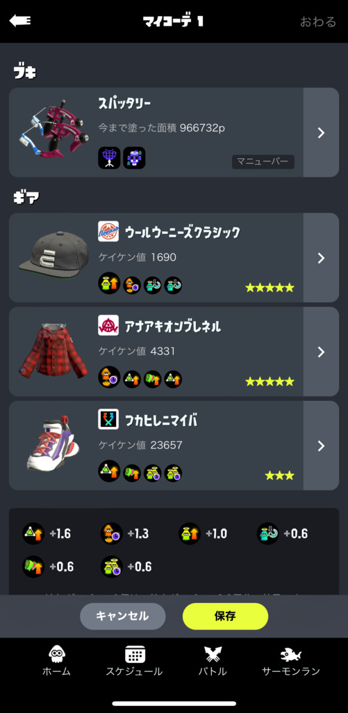長射程はドリンク以外で関わりに行かないと割り切れば、やりたいことはやれる良武器だなと。ギアも工夫する甲斐がありますし。甘えた長射程はボコボコ〜(本性)