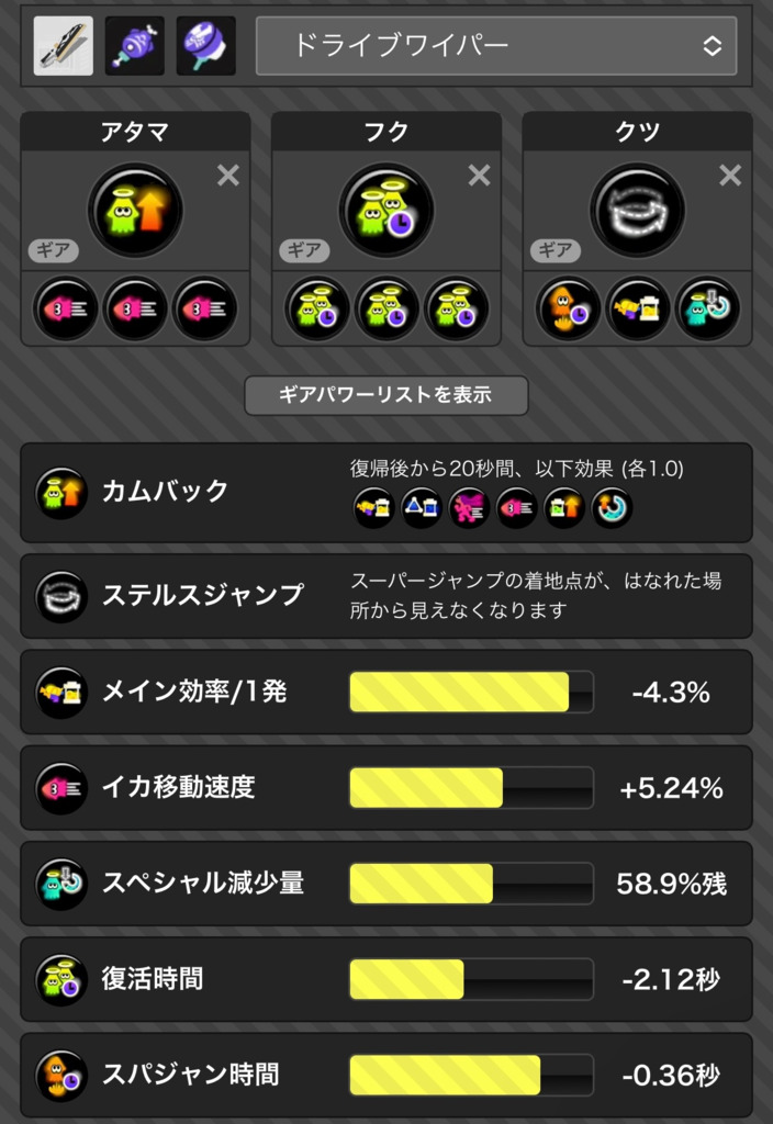 ポイポイするだけじゃダメだけどやっぱりトーピードは強いから服のところにサブインクGP10とインク回復GP9入れてるわ