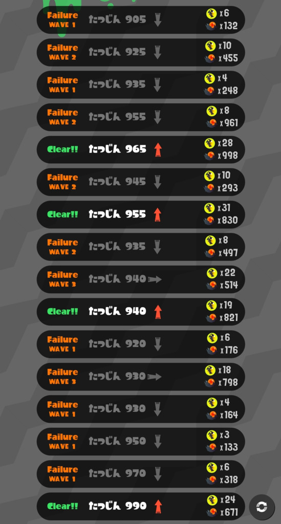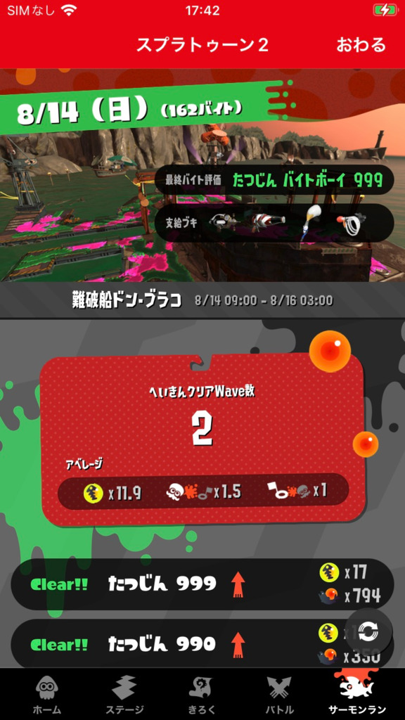 すべりこみでカンストできた、57回、平均クリア2.4wave、金10.1、デス0.8。 2日目730スタートで夜20時からは19や20startが多かったが、今日1時から再開時はほぼ度Mで優秀な仲間が多かった。仲間運が良かったみたい。パブロ・ソイだから右下マンは少なめな印象、グリルはSPないと途中から地獄、通常潮ヒカリバエとハコビヤ、キャノンがオアシスだった。